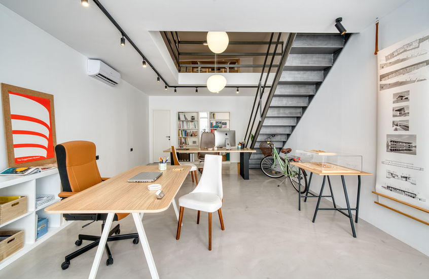 Stepping inside, you'll be greeted by an interior space that seems to defy the limitations of its former self. With a metal ladder that elegantly spans two floors, wooden furniture that adds a touch of warmth and familiarity, and large, well-naturally lit spaces, our own offices become an embodiment of our design philosophy.